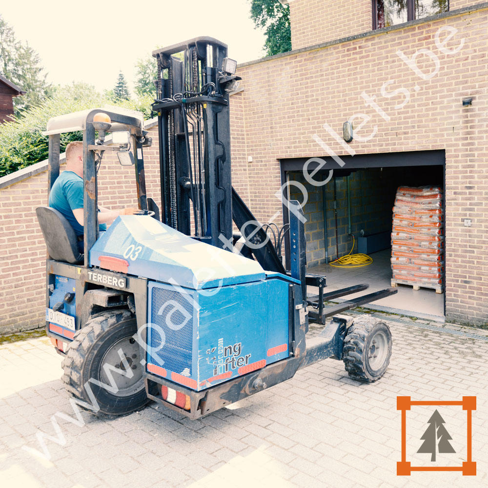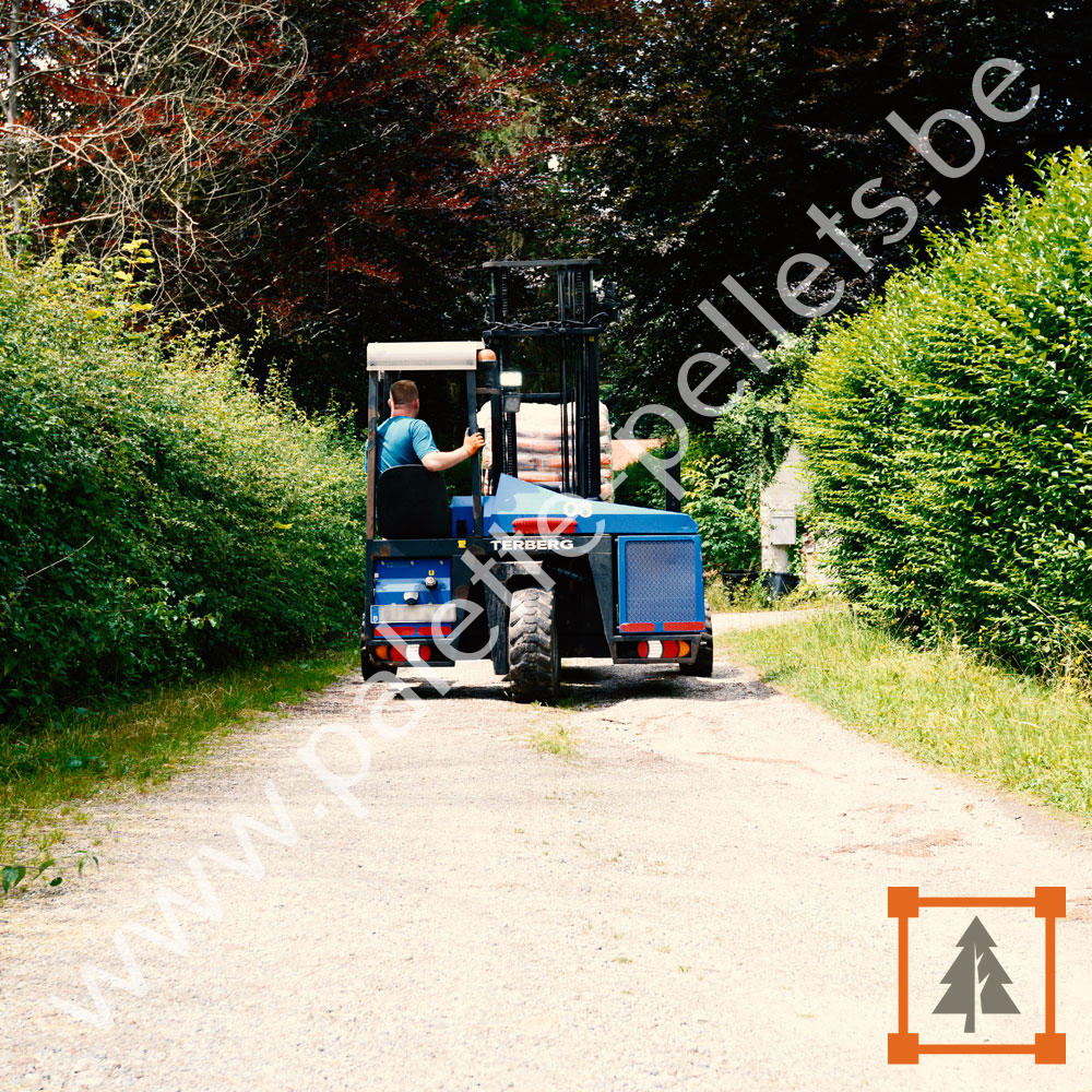 Nos camions sont toujours munis d’un Moffett pour garantir une livraison jusqu’à votre lieu de stockage.